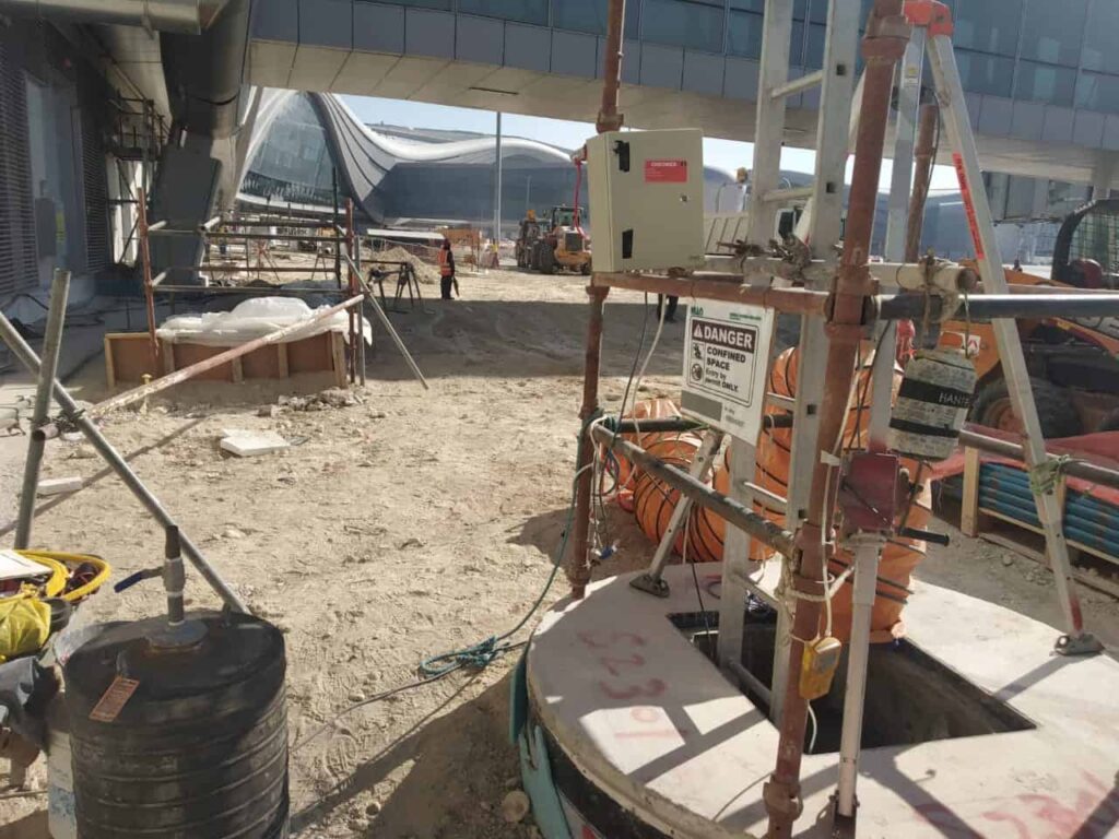 After key parts of the Midfield Terminal Complex had already been built, excessive settlements were noticed. Bauer, then, was contracted to carry out soil improvement and mitigate the risks created by the presence of loose soils under the main part of the building, as well as sewer and stormwater anholes and utility lines in the MTC construction area. Permeation grout treatment technique was chosen to increase the strength and stiffness of the fill material immediately below the structure and its utility lines.