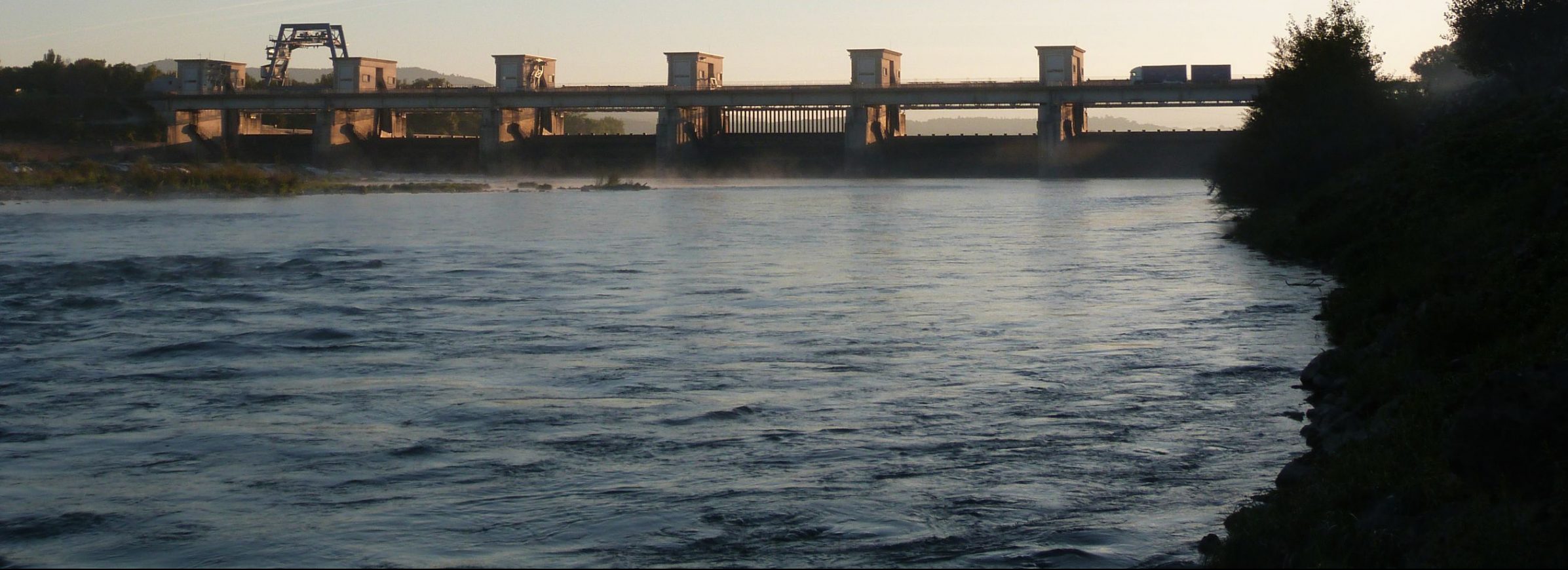 The Donzère dam is a gravity dam on the Donzère-Mondragon canal in the Ardèche valley. This structure acts to control the river to enable electricity generation, navigation and irrigation of the neighbouring plains.