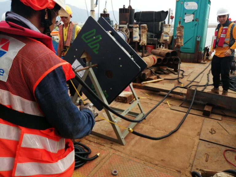 All the sensors were installed underwater, installation works were done from a jack-up barge with the assistant of divers. The challenge was to protect the signal cables from damaged and water ingress. Steel channels were used as cable tray on the seabed. All cable connections were protected by submersible cable splicing kits and cabled to Dataloggers.
