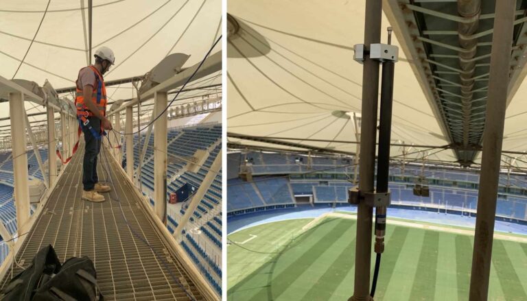Additional banners and advertisement screens will need to be secured to the stadium inner catwalks, beyond the original stadium design in order to ensure the catwalks are not overloaded, they need to be instrumented, then monitored before, during, and after the loading sequence is to take place. The monitoring activities should then remain during the service life of the stadium as the impact of the wind on the structure needs to be assessed.