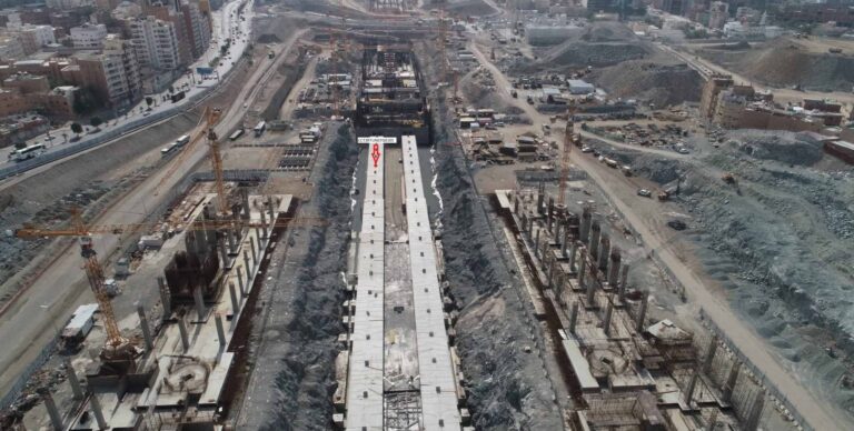 This mega project is constructed above a 3km tunnel and 2 main metro stations forming part of the future network of the Makkah Metro.
