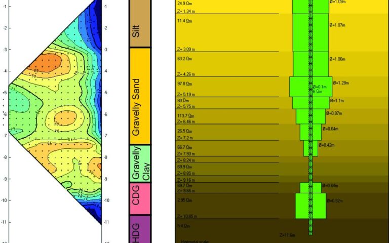 The target diameter was achieved in the upper sandy layer, and in the lower highly decomposed granite. At the middle part of the columns, where geology is composed of gravelly clay and difficult to cut when jetting, Jet Grouting was not performing well and target diameters were not achieved. This has been confirmed by additional corings of some of the columns.