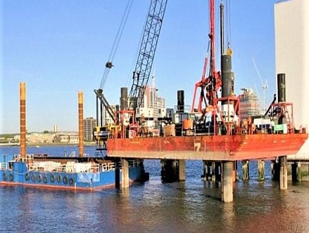 The introduction of low-energy car ferries with increased capacity required the construction of new marine terminals on the banks of the River Thames. Construction works included heavy piling into the river bed.