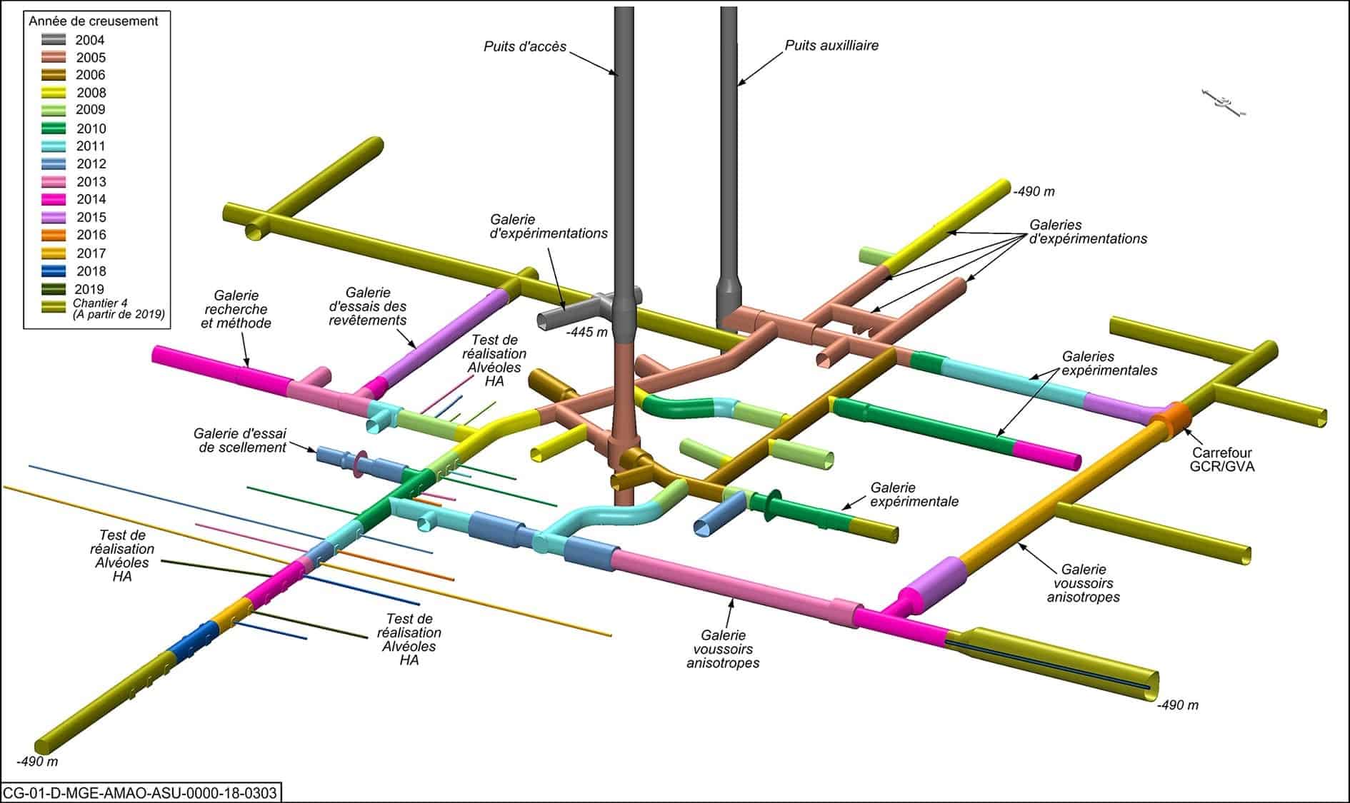 Le Laboratoire de Recherche du Centre de Meuse/Haute-Marne de l’ANDRA de Bure est un réseau de galeries souterraines profondes truffées de capteurs divers. Le but est d’évaluer les propriétés de confinement de la formation géologique située à 500 mètres de profondeur, en vue du futur CIGEO de stockage des déchets nucléaires.