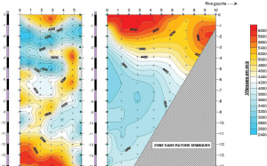 Les mesures sismiques ont permis de localiser les secteurs les moins denses dans le corps de barrage, 2 mois après des injections de consolidation, et de comparer avec une zone non traitée.