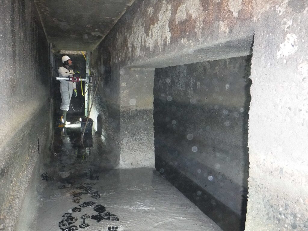 - les caractéristiques des bétons et leur pollution à partir d’auscultations non destructives, de prélèvements et d’analyses en laboratoire